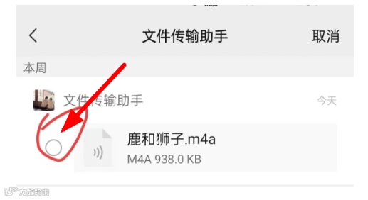 第五步:聊天记录里选择好音频文件,点击小圈即可