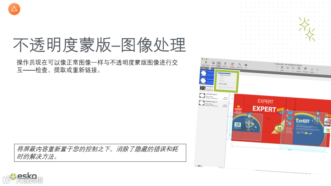 艾司科esko 艾司科是一家在包装、指示牌和展示用品整饰、商务印刷以及专业出版方面为企业提供整合解决方案的全球化供应商。艾司科产品和服务能帮助客户提高生产效率、缩短上市时间、降低成本、拓展业务及改善赢利能力。