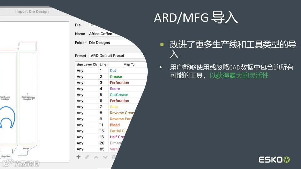 艾司科esko 艾司科是一家在包装、指示牌和展示用品整饰、商务印刷以及专业出版方面为企业提供整合解决方案的全球化供应商。艾司科产品和服务能帮助客户提高生产效率、缩短上市时间、降低成本、拓展业务及改善赢利能力。