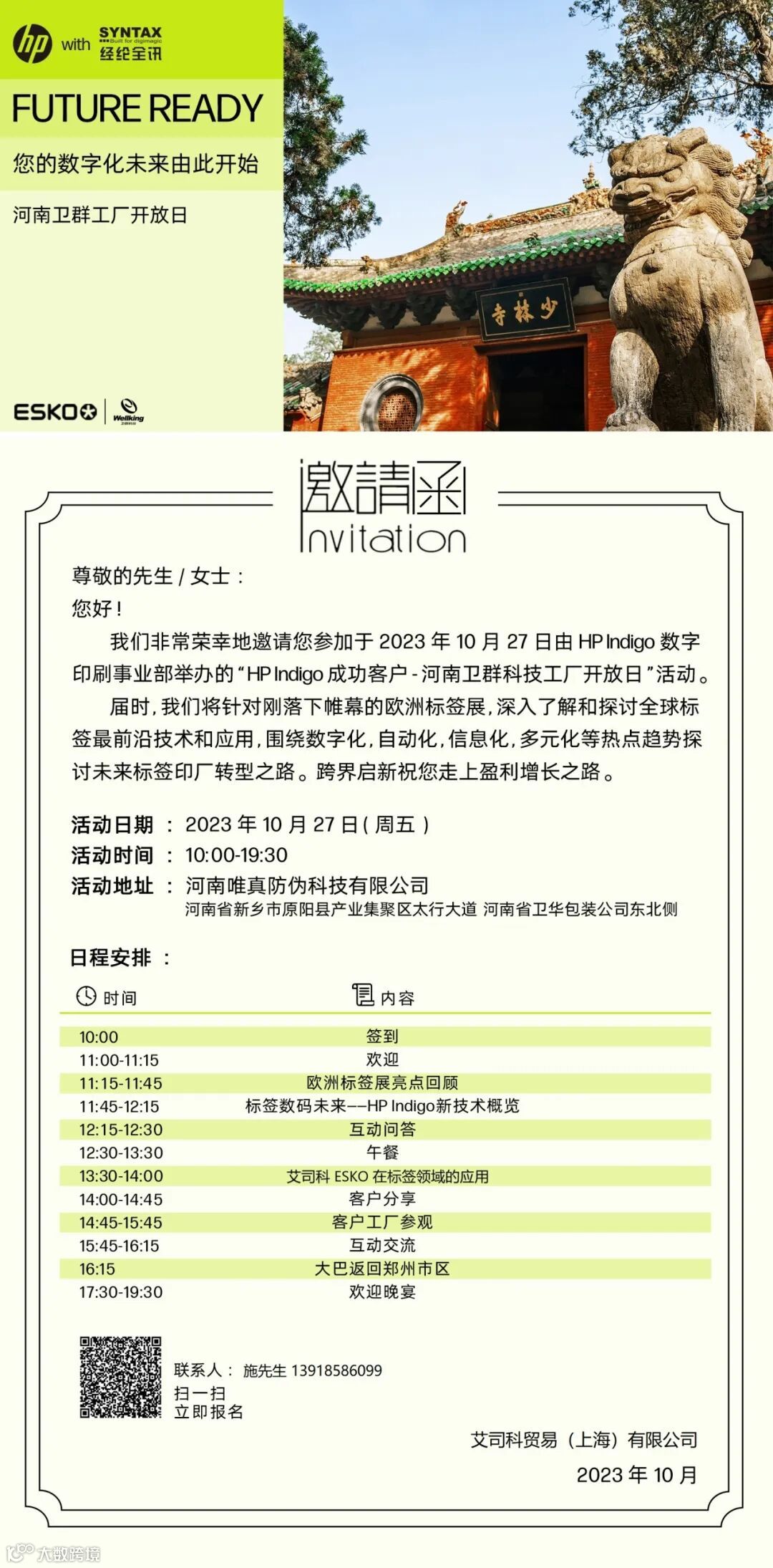 【邀请函】艾司科诚邀您参与:HP Indigo 成功客户 - 河南卫群科技工厂开放日