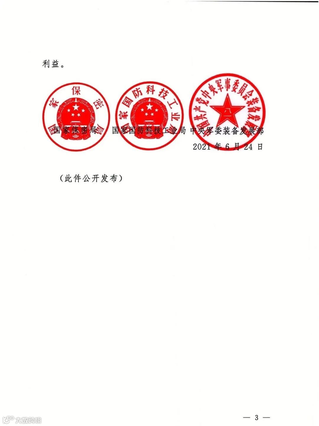内容来源:国家保密局、国防科工局、中央军委装备发展部