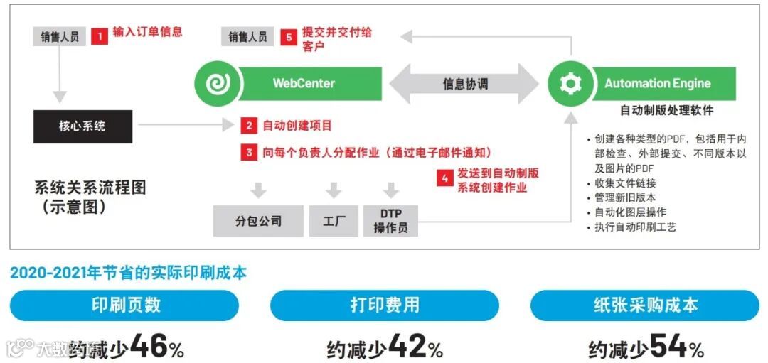 “对此,我们通过让WebCenter发出指令并使用工作流程自动化系统Automation Engine自动提取数据来减少人力并消除错误,进而减轻了负责检查数据的检验部门的工作量。”Nagano先生解释道。