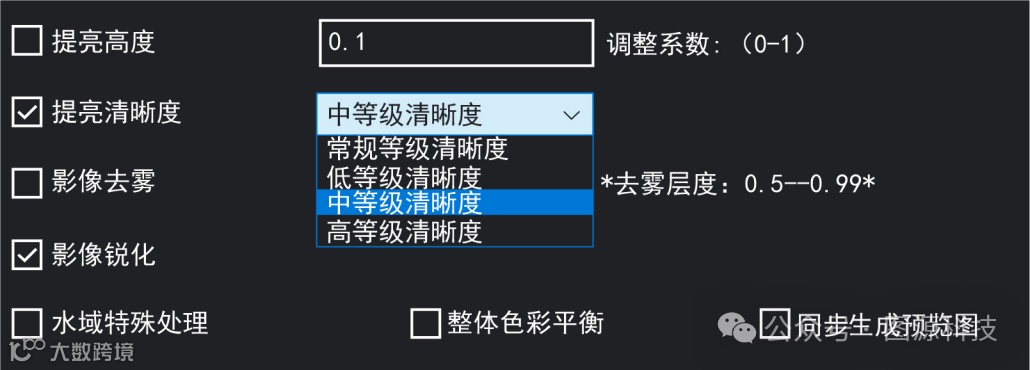 2. 增加匀色算法清晰度调整功能,提供常规等级、低等级、中等级和高等级四种清晰度调整模式,更灵活的调节提高影像清晰度。