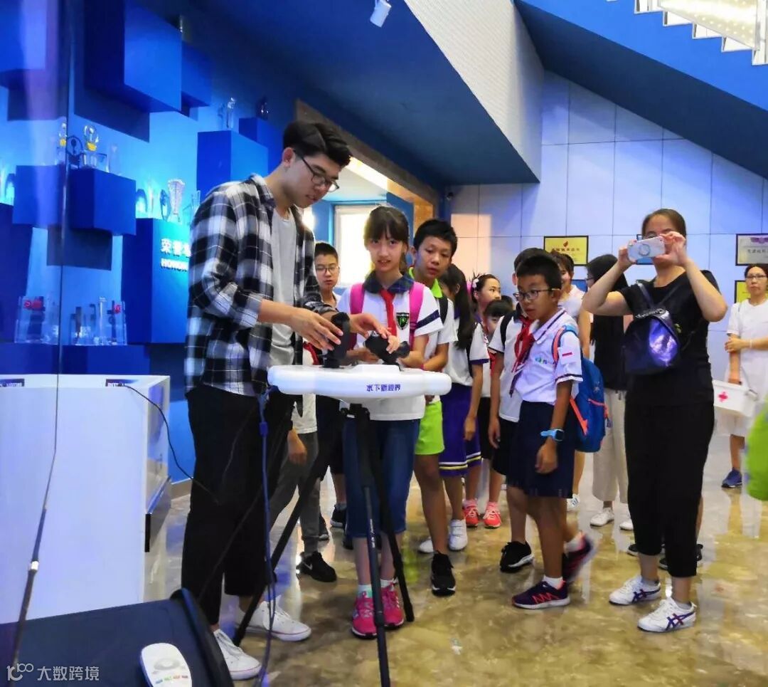 从踏入深之蓝的那一刻起,庞大的柱池,游来游去的机器人,各种型号的水下设备一应俱全,浓厚的科技氛围激发了孩子的探索欲望。他们踊跃发言 、积极提问 ,展现出了青少年的蓬勃朝气。