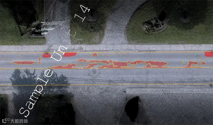 TBC中的路面检查功能自动提取缺陷并评估路面状况指数。图片来源:GeoVerra