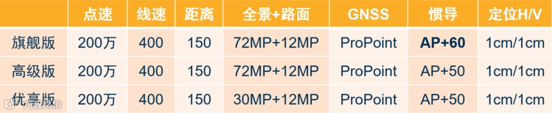 配备Applanix IN-Fusion+和高端的AP+50 IMU惯导技术,融合Trimble ProPoint GNSS技术,定位更精准;
