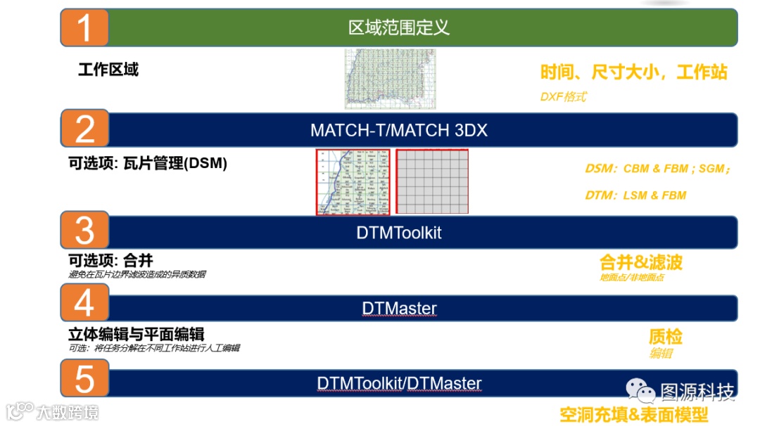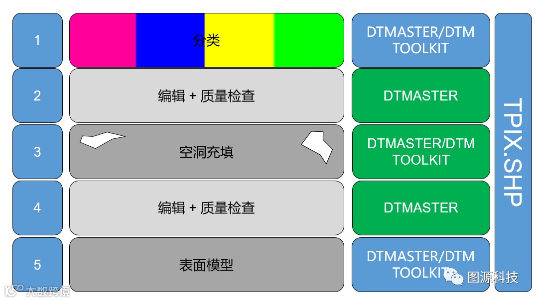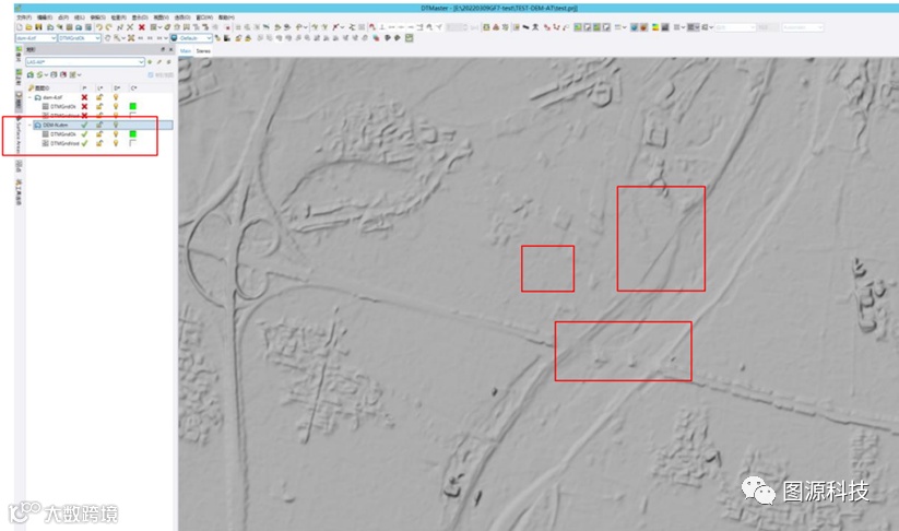 (1)DSM的分类滤波。DSM匹配完成之后,首先要通过DTMToolkit工具或DTMaster中自带分类滤波策略,进行分类滤波。之后在DTMaster中对DSM/DTM点云进行二/三维的编辑和质检工作。