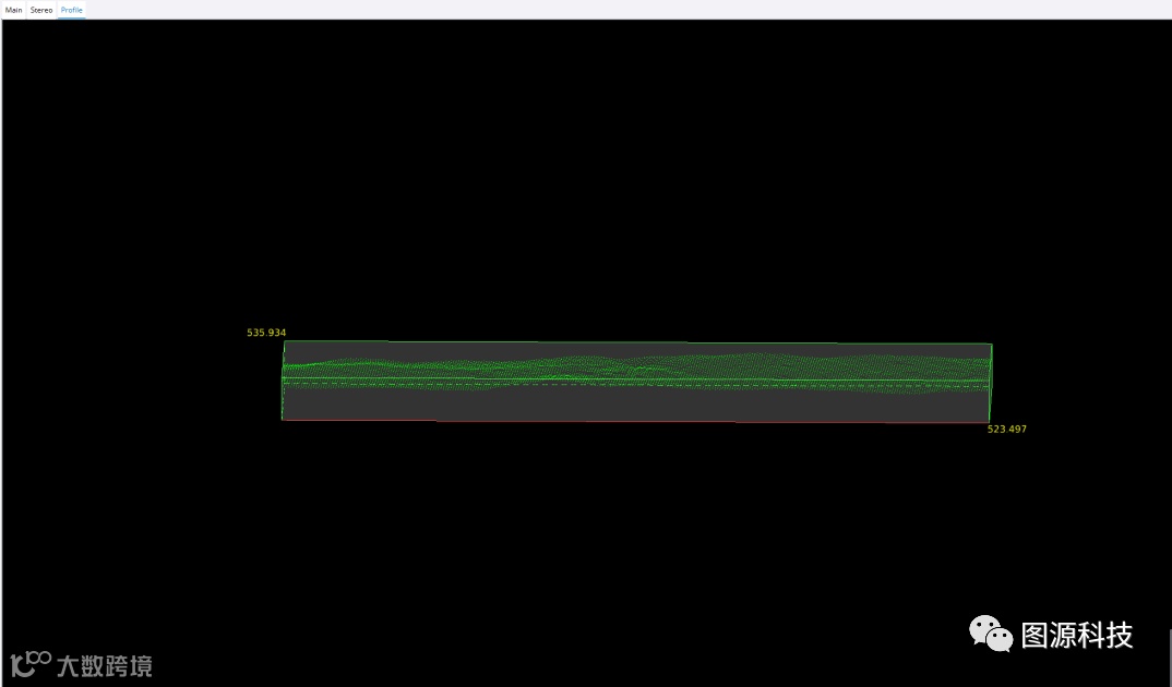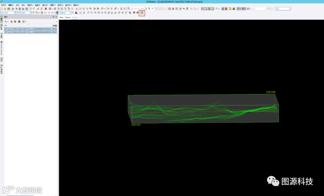 ③编辑完成之后,也可以在剖面显示模式,具体查看分析地形变化,对异常部分的点云进行再次编辑,最后在去掉地面构筑物后,真实反应地形变化。