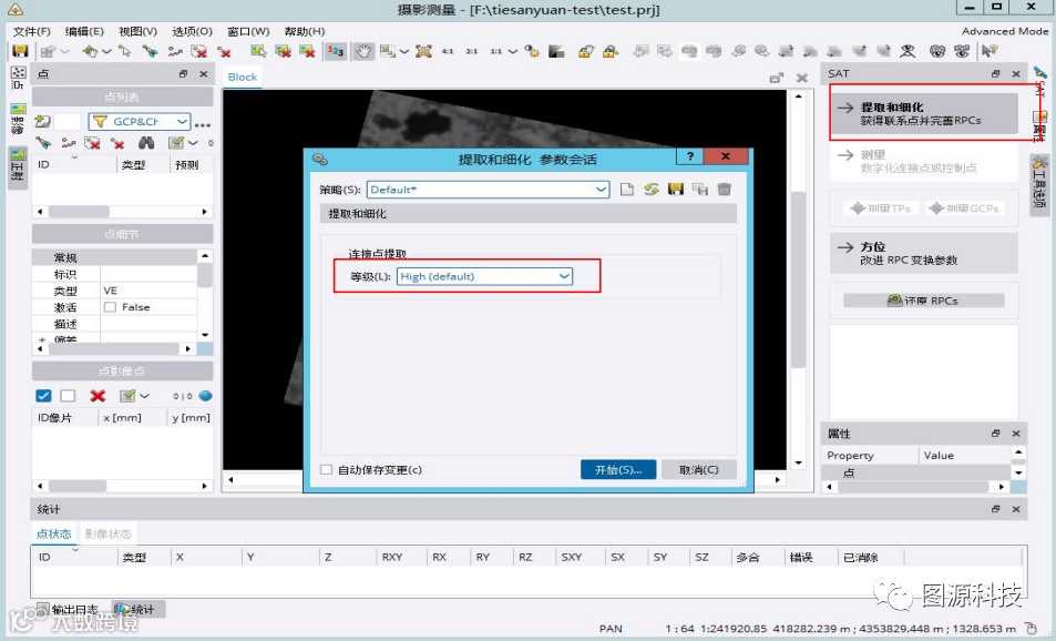 (2)工程建立完成之后,进入空三计算的界面,选择一个连接点提取等级,进行空三加密。