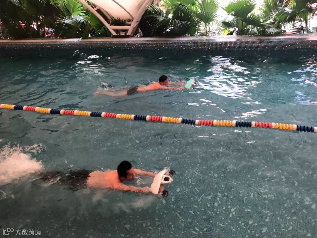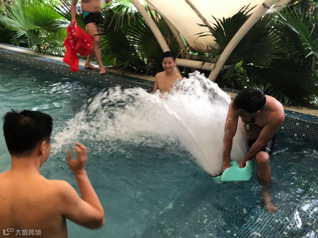 为了更好的释放水下乐趣,深之蓝为白鲨MIX竞速比赛融入了“你比我猜”趣味环节,四处飞溅的水花,高昂的欢呼声,让泳池也充满了海边的热情。