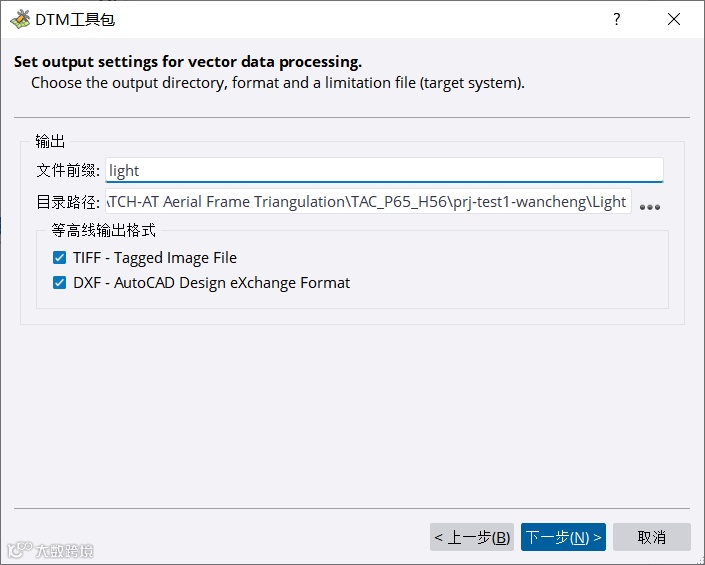 自定义存储路径和文件名前缀,导出格式可选择TIFF和DXF两种格式。