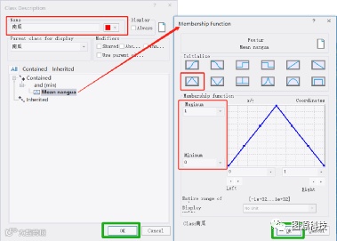 4. 基于“南瓜”热度图使用隶属度函数进行分类,首先创建隶属度函数的阈值范围,选择合适的隶属度函数,设置最大值与最小值。