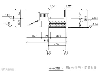 利用点云数据处理软件,对采集到的点云数据进行配准、去噪、取样等工作,得到清晰且完整的点云数据。根据处理好的点云数据制作图纸,得到平面图、立面图、剖面图、大样图。
