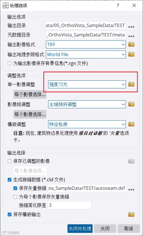 通过成果图可以看到经过OrthoVista的匀光匀色处理,无论是在明亮程度、色彩一致性上影像都得到了较大的改善,影像的视觉效果得到了提升,色彩更加平衡。OrthoVista针对原始影像质量较差、问题较多的测区的影像色彩平衡处理有着独到的处理方式和算法,可以得到满足不同项目要求的成果。