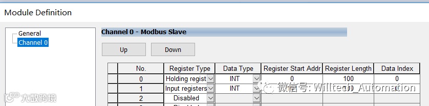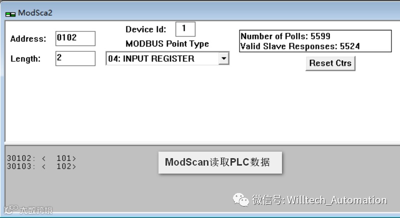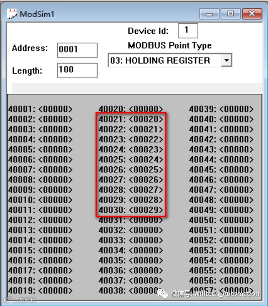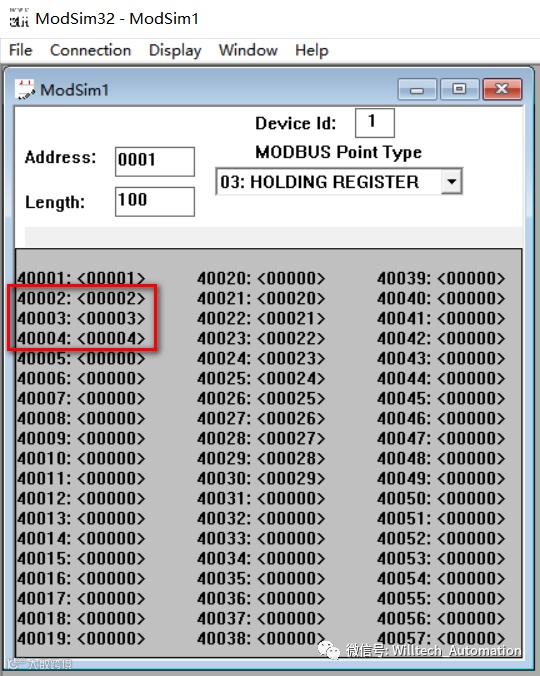 偏移到实际Modbus地址,保持寄存器地址400003等于Modbus地址偏移量中填写3。(0 - 65535)