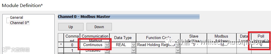 选用Continuous 连续通讯时,循环方式为Poll Interval(轮询间隔)