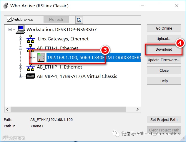 把配置好的程序下载到PLC中,PLC建立连接的方式参考文章《CMX从零开始 | Basic(一)建立连接》。