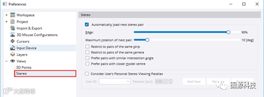 修复立体视图旋转问题。在自动立体像对加载过程中,有时像对的旋转会意外地旋转180度(例如,从北向南)。现在,可以确保在自动立体像对加载过程中,旋转角度差在允许的角度范围内(请参阅首选项)。