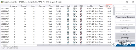 4. 影像命令器中添加新的一列:' MPix/百万像素 '