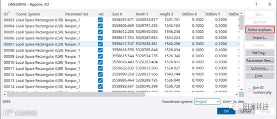 在项目编辑器的GNSS/IMU对话框中添加了一个新按钮。如果项目中存储了大量的GNSS/IMU数据记录,但导入的影像数量较少,用户可以通过“未匹配”按钮检测到不必要的GNSS/IMU数据记录,然后通过“删除”按钮删除它们。