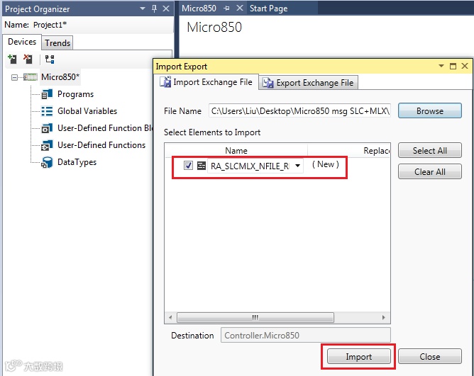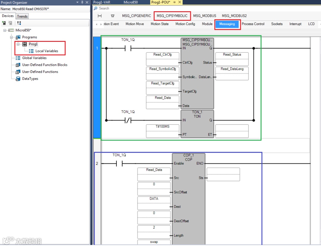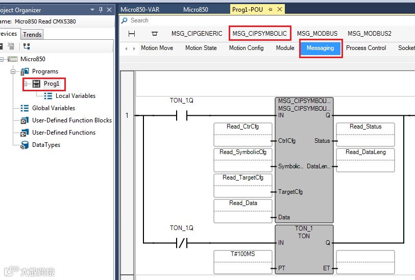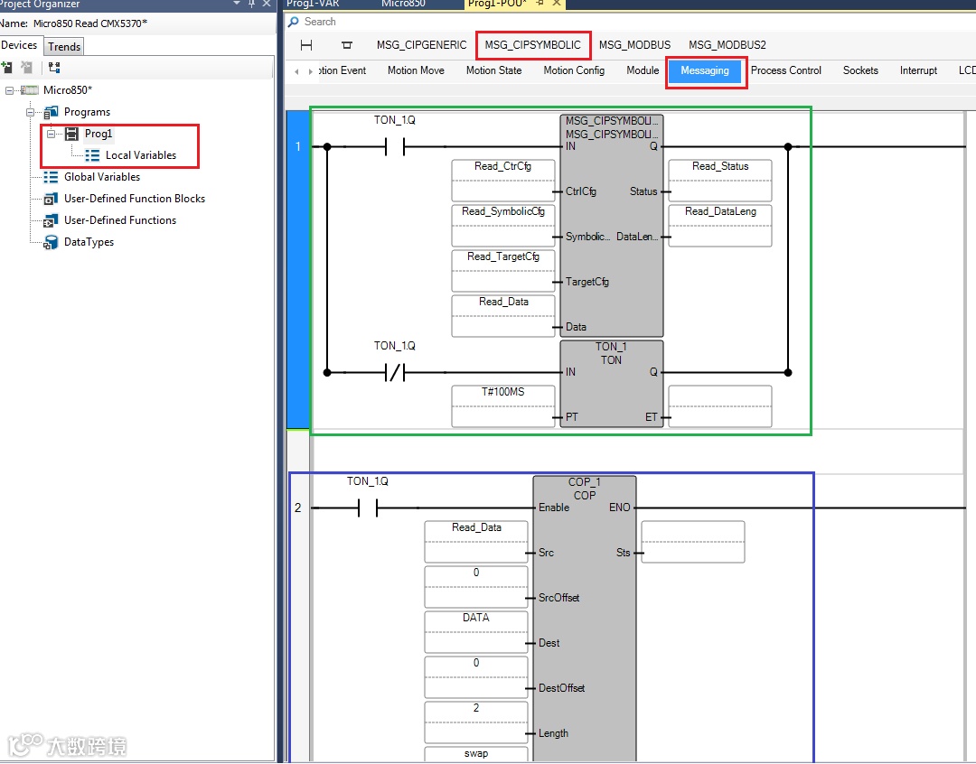 读取1756-L8xE程序中DINT类型为Data[0],Data[1]数据到Micro850处理器Data[10],Data[11]中