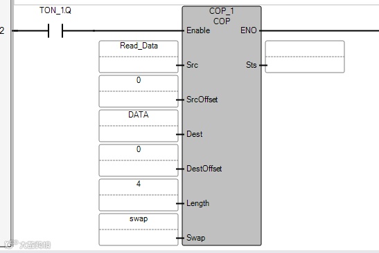 4.COP指令转换数据中数据字节需要交换,Swap=1;程序执行后如图: