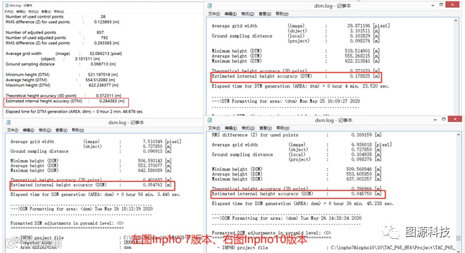 无论是匹配Dtm还是DSM,Inpho10的版本高于Inpho7的版本。