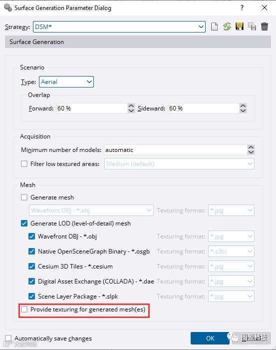 3. Match-3DX模块中创建无纹理的3D网格时,系统会提示只应激活osgb 格式创建无纹理网格。