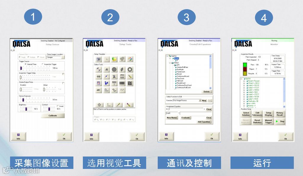 DALSA的软件系统相对来讲更加的开放,Keyence的平台是固定死的,Cognex是不能 添加新的算法的;