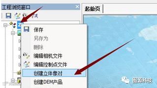 (3)恢复好的工程还没有立体像对,需要生成一下,生成的方法是在左侧的ZI工程上右键——>创建立体像对。
