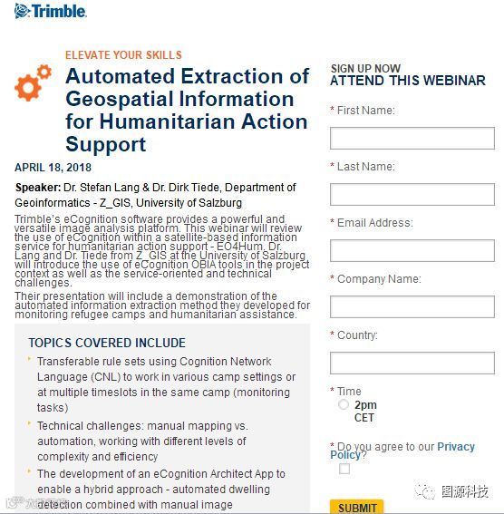 http://infogeospatial.trimble.com/2018-4-18eCognitionwebinar_GeospatialWebinarRegistrationPage.html?utm_campaign=ecognition_april_webinar&utm_source=email&utm_medium=email&mkt_tok=eyJpIjoiT0Rjd016RTJNbVppWlRndyIsInQiOiJiMWt1MHU0cDRVWFFwMnhWZ2paaWlET1VqR0t5bzJJQlwvMTZXTXN1Rloxc2NwQ1dmNkhnSXNOQmlNdksyTWM5R2dYa3paZlYwUWtsK29lU1YxNE42UlwvcWdZdnJyNXJoN3NlbjZTMG9cL1NwKzRna1wvb2dzS0puTHlYXC82OU5zSldKIn0%3D