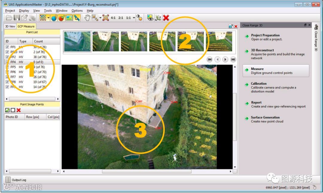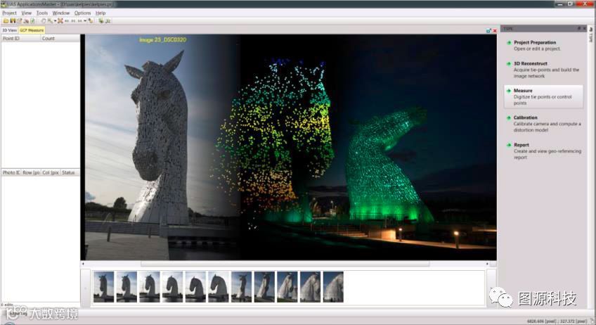 对比航空摄影测量工程中所具有的多重链接选项的影像测量工具,UASMaster为“三维重建”工程提供非常简单的影像测量工具。