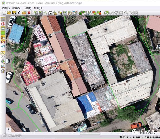 拼接线在房屋密集区域,穿过房屋,造成房屋屋顶有些错位缺陷。