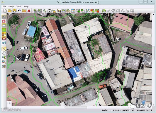 通过UASMaster软件生成的正射影像是一幅镶嵌后测区总图,中间匀光匀色和探测拼接线的过程是在黑盒中处理的,人为无法干预。因此有可能存在这样的问题,大面积高楼林立房屋密集的城区,有些房屋和高架有可能出现错位的情况,针对这种情况,仅有UASMaster用户会选择编辑DSM/DTM点云数据解决,但有些错位等缺陷问题不是编辑点云来解决,而是通过OrthoVista镶嵌匀色模块检查拼接线,对有缺陷的区域拼接线进行编辑即可。