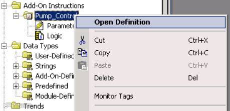 如果我们未选中“打开定义”(Open Definition),将不会打开该对话框。此时,我们应右键单击“Pump_Control”并选择“打开定义”(Open Definition)。