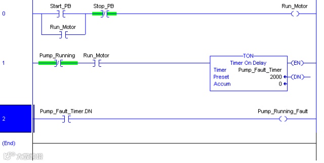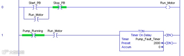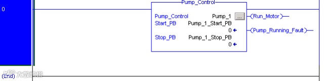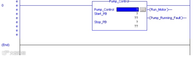 15.使用工具栏或指令名称向空白梯级中添加一个泵控制指令。