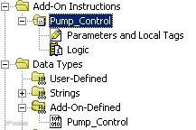 随后将显示许多新内容:名为 Pump_Control 的新用户自定义指令文件夹(其中包含参数和局部变量、逻辑)和一个新的附加定义数据类型。