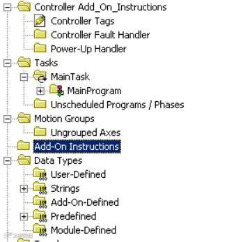 第 16 版 RSLogix 5000 引入了可重用代码对象的概念,称为用户自定义指令。借助用户自定义指令可将最常用的逻辑封装成可重用指令集,这些指令集与 Logix 控制器中内置的指令非常相似。由于可在项目中轻松地重用常用指令集,因而可节省时间;同时,又由于无论谁来实施项目,常用的算法都将按同样的方式工作,因而还有助于促进项目的一致性。
