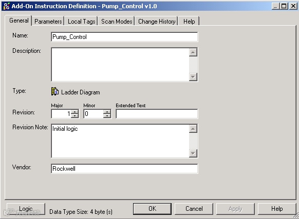 2.按下图所示填写“新建用户自定义指令”(New Add-On Instruction) 对话框,然后单击“确定”(OK)。