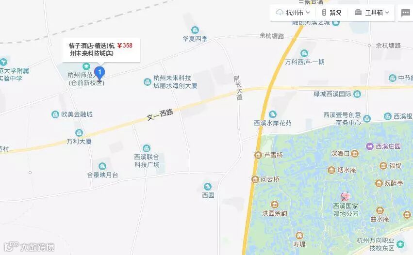 酒店名称:桔子酒店精选杭州未来科技城店(杭师大店)