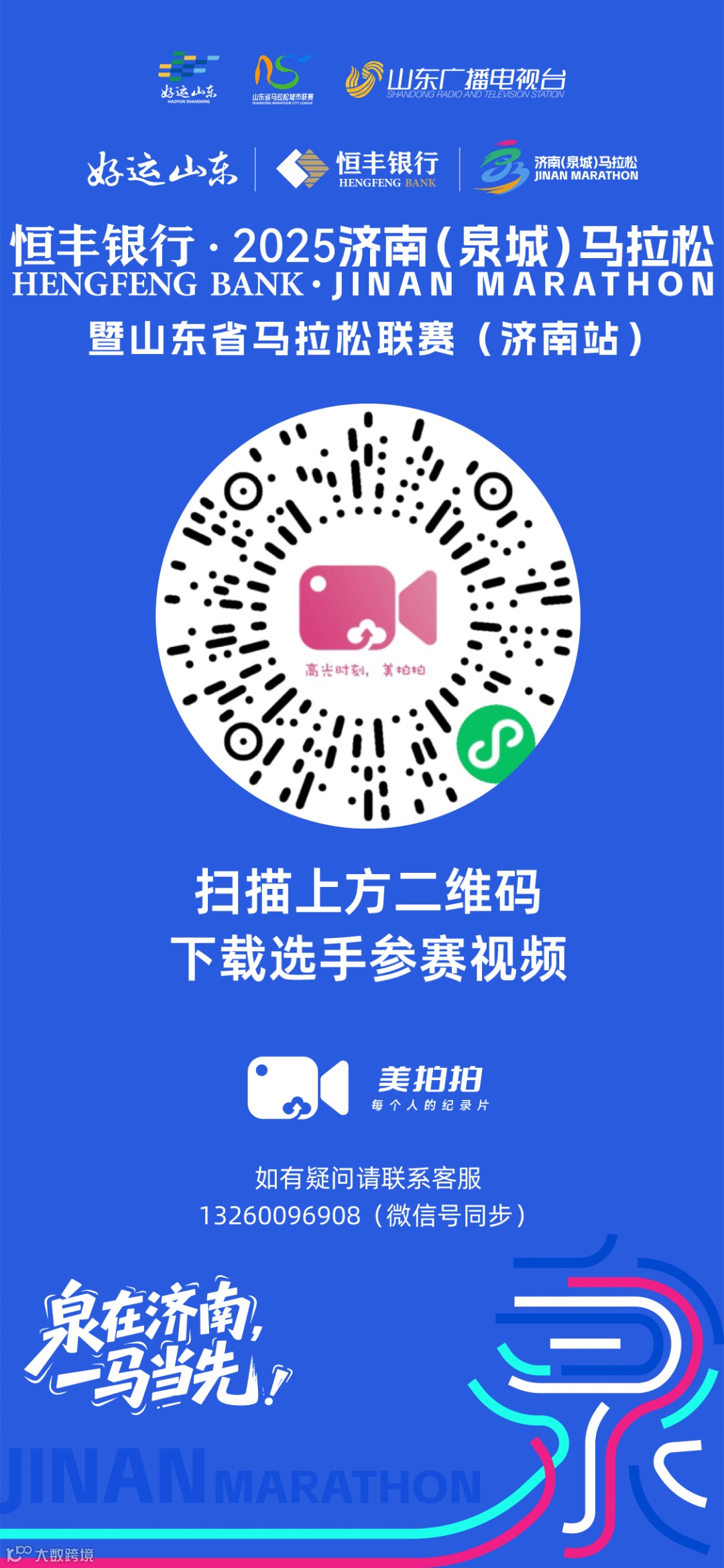 本次冲线版视频,将你的奋斗瞬间与泉城风光深度相融,定格专属你的巅峰时刻:镜头精准捕捉你冲线时的每一处动人细节 —— 紧握奖牌的双手、洋溢喜悦的笑容、滑落脸颊的汗珠,把突破自我的热血瞬间清晰放大,让每一份坚持都极具感染力;同时完整收录你穿过终点龙门的壮阔场景,背景里大明湖的粼粼波光、泉城广场的标志性轮廓与现场欢呼的人群交相辉映,让这份荣耀时刻既饱含个人奋斗的光芒,又深深镌刻着泉城独有的城市韵味,成为值得永久珍藏的奔跑纪念。