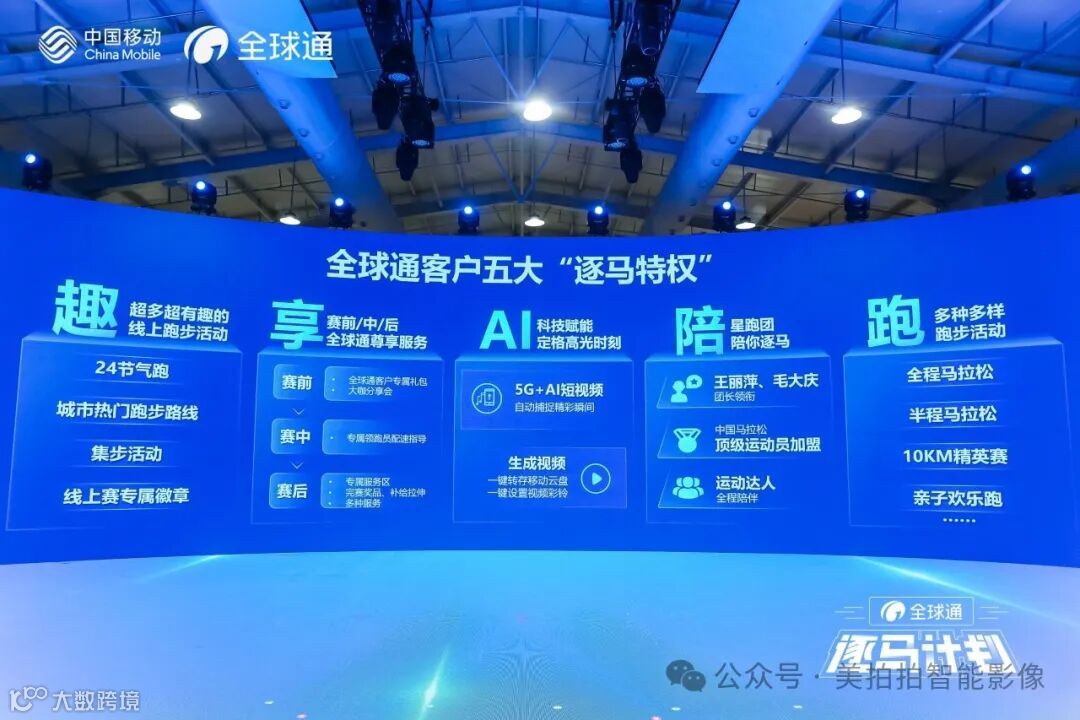 2024“全球通·逐马计划”焕新升级,赛事站次扩至 11 场,涵盖全程马拉松、半程马拉松、10 公里跑、亲子跑、欢乐跑、线上跑等多样方式。全新的「趣享 AI 陪跑」五大逐马特权揭晓,客户可以在「AI」科技赋能之下定格赛道高光时刻,提升感知体验。