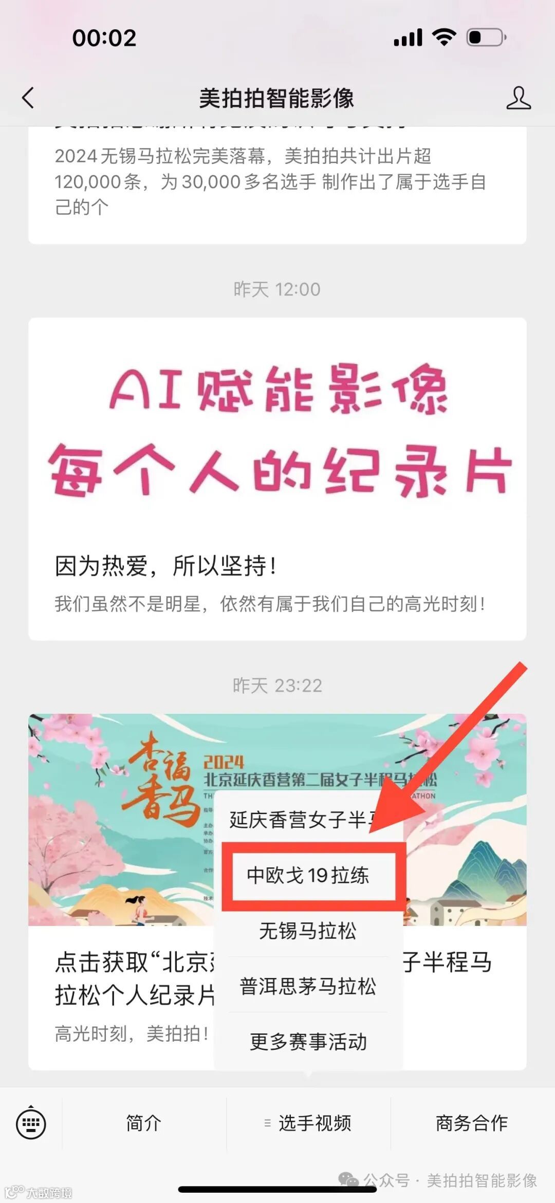 在公众号菜单栏点击“选手视频”