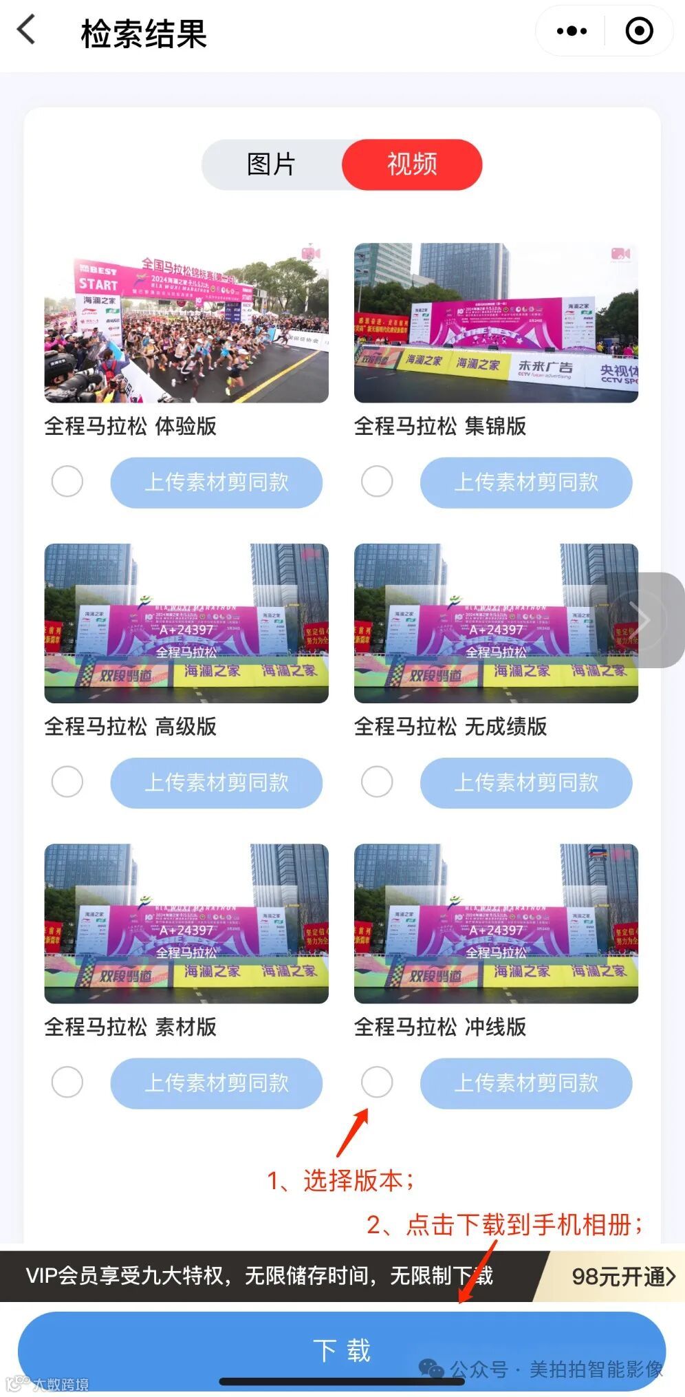 左下角选中自己需要下载的视频