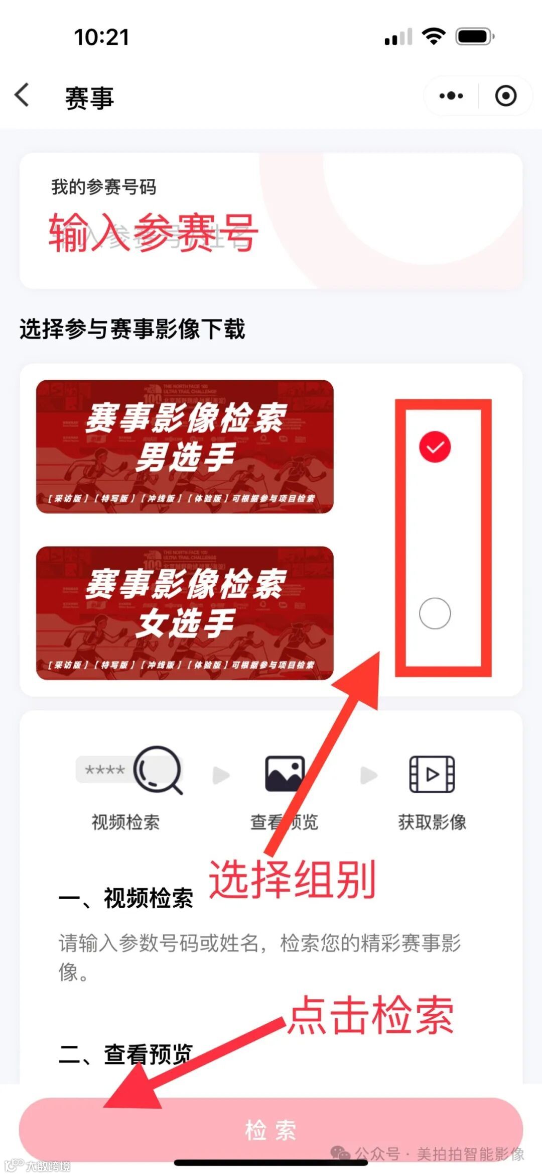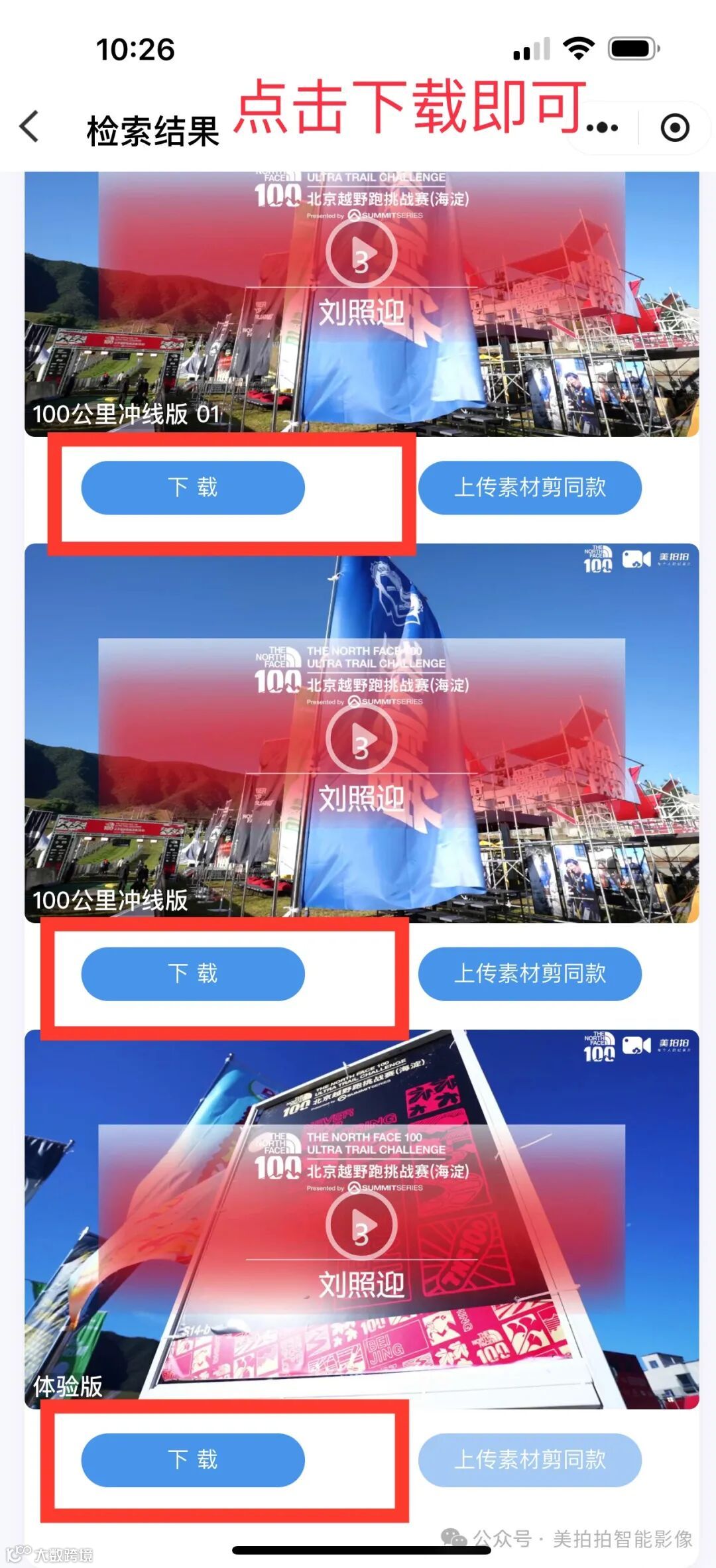 美拍拍用智能识别、智能分拣、智能剪辑等人工智能和AI技术,为参赛选手打造个人专属的越野赛纪录片,完赛后通过号码牌搜索、预览和下载即可。
