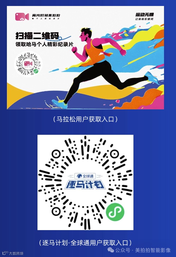 美拍拍通过智能影像AI技术,为选手制作出个人专属马拉松纪录片。本次赛事预计出片8万条,赛后选手通过号码牌领取即可。