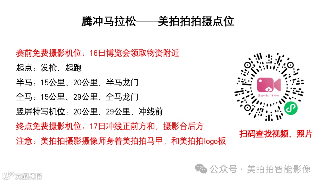 11月17日,美拍拍将服务南京马拉松和腾冲马拉松,继续为选手们带来个人纪录片,此次赛事的拍摄点位以及美拍拍完赛惊喜如下: