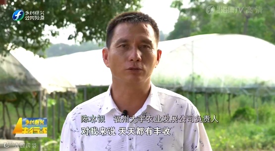 福州大宇农业发展公司负责人 陈水银:有设施大棚种植蔬菜,可以多样化种植,对我来说,天天都有丰收。