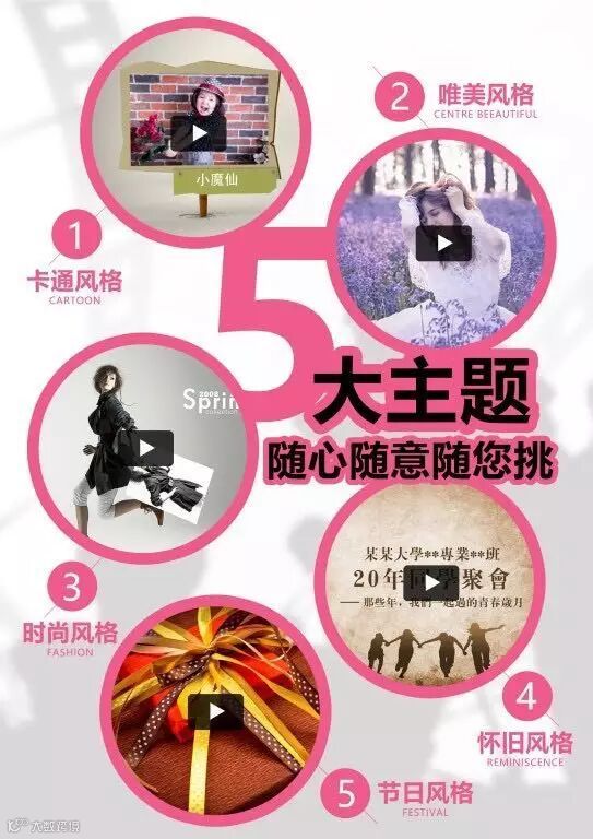 每次过年都代表一个家庭又成长了一岁,记录成长没有视频怎么行?记录爸爸妈妈用怀旧风、记录兄弟姐妹的时尚风、记录中意的TA的浪漫风、记录家里萌娃的卡通风、记录全家人在一起的节日风~5大主题风格随你挑!