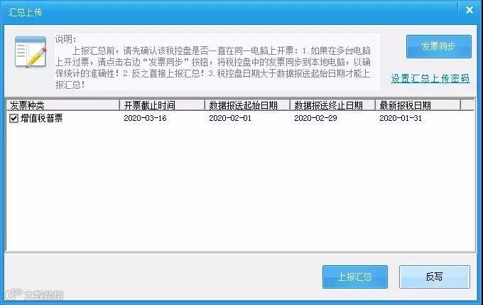 1.请您在计算机连接互联网状态下登陆开票系统,开票系统自动进行上报汇总并提示“征期自动汇总上传成功”。(如未连接互联网,电脑桌面右下角每天会弹框提示一次,直至征期结束)